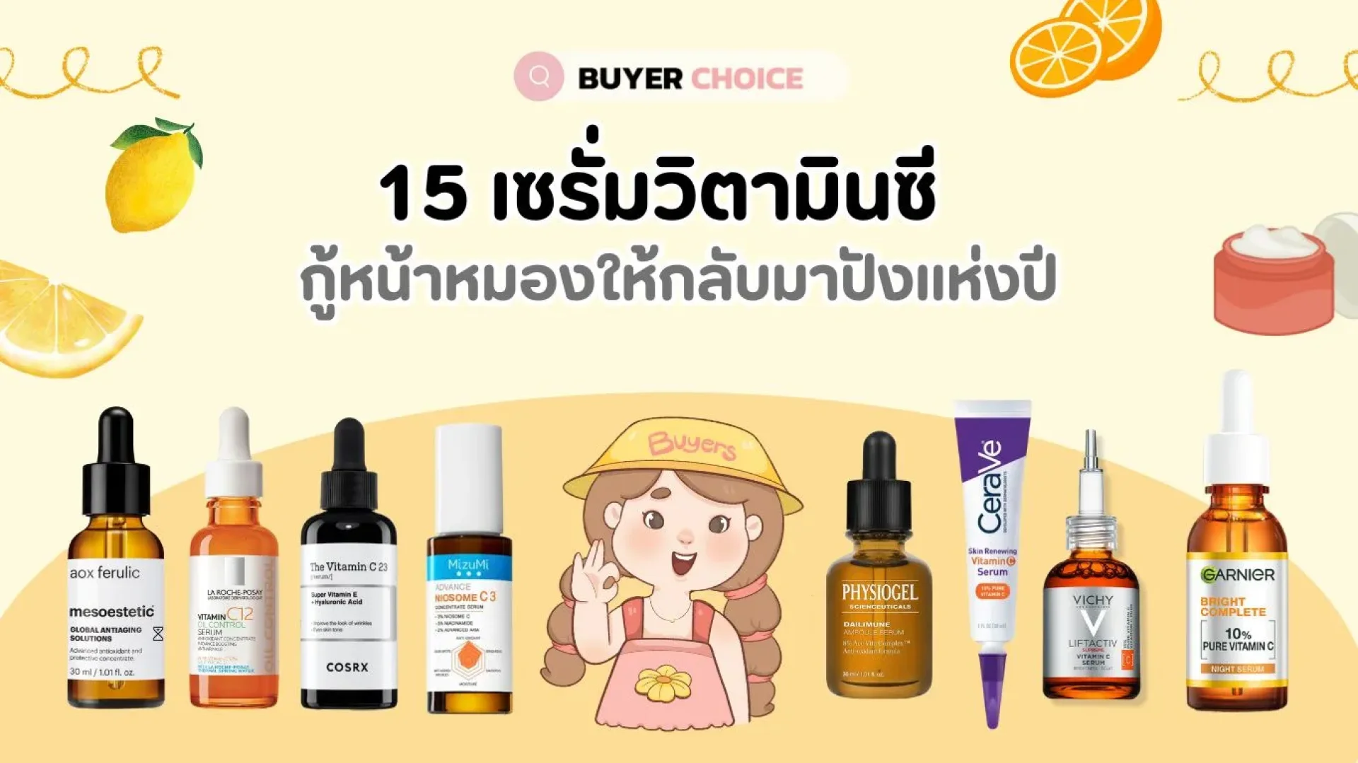 บทความนี้ BuyerChoice จึงได้รวบรวม 15 เซรั่มวิตามินซี ที่ดีที่สุดแห่งปี 2025 ที่จะช่วยกู้ผิวโทรมให้กลับมาดูเปล่งปลั่ง กระจ่างใส และมีออร่าได้อีกครั้ง มาดูกันว่าจะมีตัวไหนที่เหมาะกับผิวของคุณบ้าง?