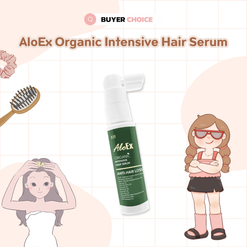AloEx Organic Intensive Hair Serum เซรั่มบำรุงหนังศีรษะและเส้นผมสูตรเข้มข้นที่เน้นส่วนผสมออร์แกนิก ช่วยลดผมร่วงและลดผมหงอก พร้อมบำรุงรากผมให้แข็งแรงตั้งแต่รากจรดปลาย