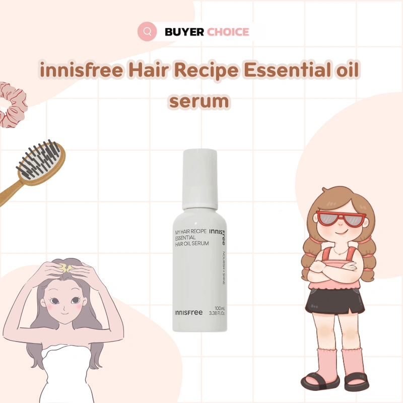 Innisfree Hair Recipe Essential Oil Serum เป็นเซรั่มบำรุงผมที่เน้นส่วนผสมจากธรรมชาติ ช่วยให้ผมแห้งเสียกลับมานุ่มสลวยและเงางามอีกครั้ง ด้วยเนื้อออยล์ที่ซึมซาบเร็ว จึงไม่ทำให้ผมเหนียวเหนอะหนะ