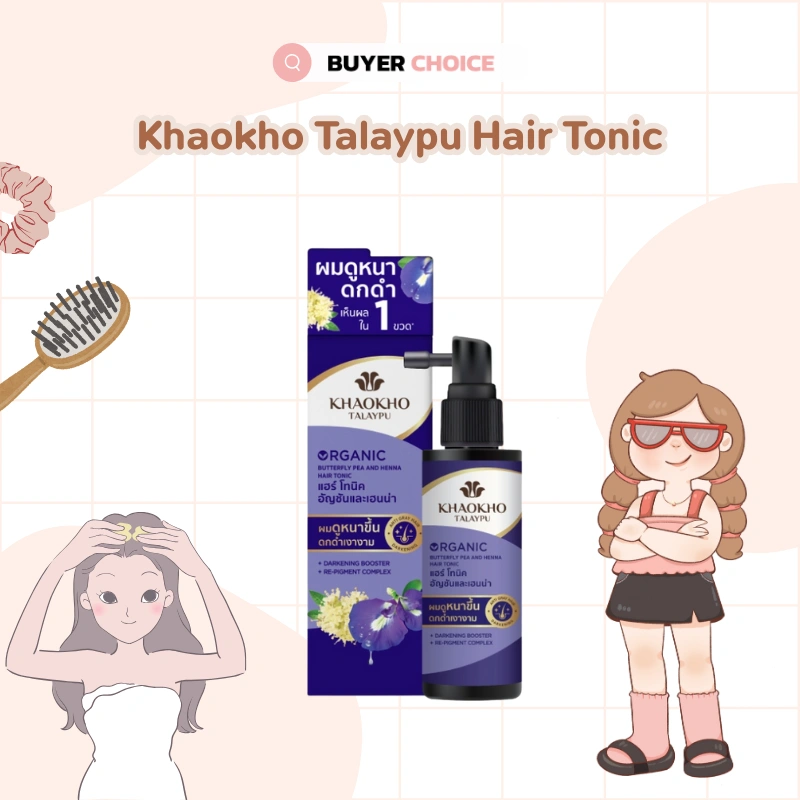 Khaokho Talaypu Hair Tonic เป็นแฮร์โทนิคจากแบรนด์ไทยอย่างเขาค้อทะเลภู ที่เน้นการดูแลเส้นผมด้วยสมุนไพรธรรมชาติ สูตรอัญชันและเฮนน่าช่วยให้ผมดูหนาดกดำและลดการเกิดผมหงอกก่อนวัย
