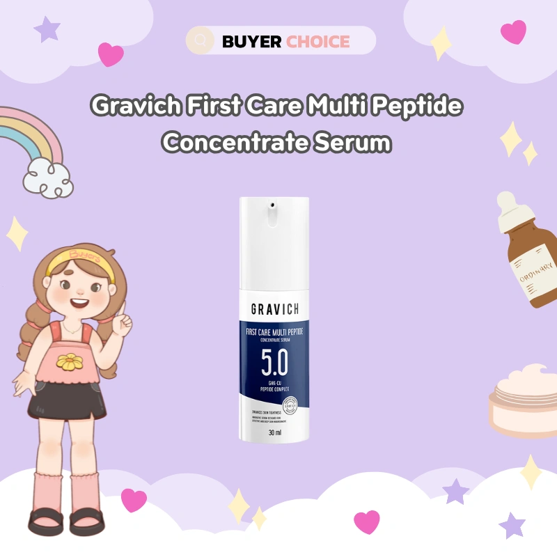 - สำหรับเซรั่มของ Gravich นี้ ใช้เปปไทด์หลายชนิด ได้แก่ Copper Peptide (ช่วยแก้ปัญหารูขุมขนและรอยสิว), Pentapeptide-18 (ช่วยลดริ้วรอย), และ Oligopeptide-34 (ช่วยให้ผิวกระจ่างใส)
