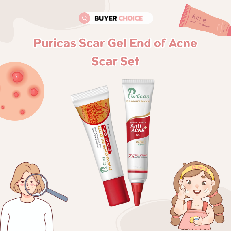 Puricas Scar Gel End of Acne Scar Set เป็นชุดผลิตภัณฑ์ดูแลผิวที่เกิดจากสิวที่คิดค้นมาเพื่อแก้ปัญหารอยสิวได้อย่างครบถ้วนในเซ็ตเดียว โดยรวมเอาเจลลดรอยสิวดำและรอยแดงเข้าไว้ด้วยกัน ทำให้ผู้ใช้สามารถดูแลผิวได้อย่างเป็นขั้นตอน เพื่อให้ผิวหน้ากลับมาเรียบเนียนและกระจ่างใส