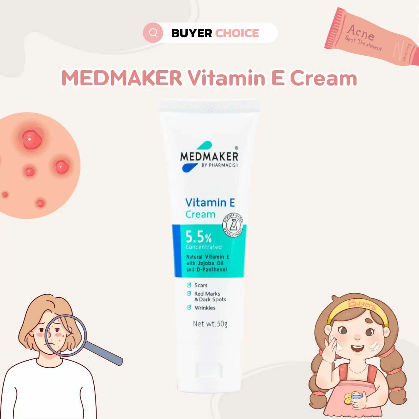 MEDMAKER เป็นแบรนด์เวชสำอางที่อยู่คู่ร้านขายยาของคนไทยมาอย่างยาวนาน ได้รับความไว้วางใจจากทั้งผู้บริโภคและเภสัชกร ด้วยมาตรฐานการผลิตที่เชื่อถือได้และคุณภาพที่ได้รับการยอมรับมาอย่างต่อเนื่อง หนึ่งในไอเทมที่ได้รับการแนะนำ คือ MEDMAKER Vitamin E Cream ครีมบำรุงผิวที่มีส่วนผสมขอ Vitamin E เข้มข้น 5.5% ช่วยบำรุงผิว พร้อมช่วยดูแลรอยสิว รอยแผลเป็น และริ้วรอย ให้แลดูจางลง