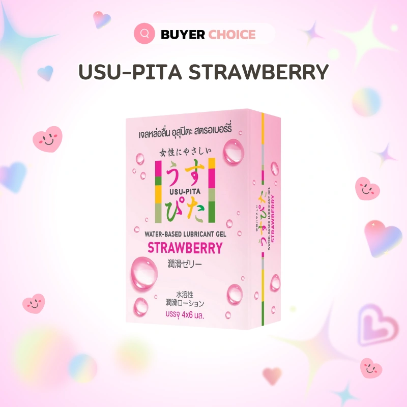 USU-PITA Strawberry สูตรน้ำ กลิ่นสตรอเบอร์รี่ โดดเด่นด้วยบรรจุภัณฑ์แบบซองเล็ก (Single-Use) ขนาด 6 มล. โดย 1 กล่องมีทั้งหมด 4 ชิ้น ซึ่งช่วยให้สะดวกต่อการพกพา รักษาความสะอาดในทุกครั้งที่ใช้งาน และยังเหมาะสำหรับผู้ที่อยากทดลองใช้ก่อนตัดสินใจซื้อขนาดใหญ่ เนื้อเจลใส สูตรน้ำ มอบความลื่นไหลอย่างเป็นธรรมชาติ มีกลิ่นหอมหวานของสตรอเบอร์รี่เพื่อเพิ่มบรรยากาศที่สนุกสนานระหว่างกิจกรรม