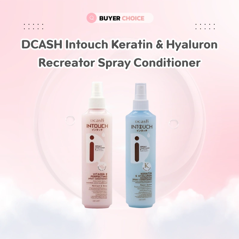 DCASH (ดีแคช) เป็นแบรนด์ผลิตภัณฑ์เกี่ยวกับผมที่รู้จักกันดีในกลุ่มผลิตภัณฑ์ทำสีผมและการบำรุงผมในร้านซาลอน DCASH Intouch Keratin & Hyaluron Recreator Spray Conditioner เป็นสเปรย์อาหารผมชนิดไม่ต้องล้างออก ที่เน้นการฟื้นบำรุงผมเสียอย่างล้ำลึกด้วยสองส่วนผสมหลัก คือ เคราติน และไฮยาลูรอน
