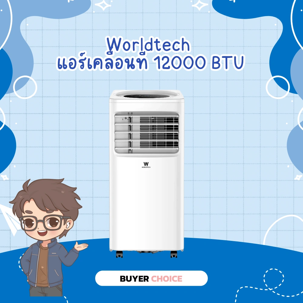 แอร์เคลื่อนที่ ยี่ห้อไหนดี | Worldtech แอร์เคลื่อนที่ 12000 BTU รุ่น WT-SKY-6A-12 หน้าจอ LED