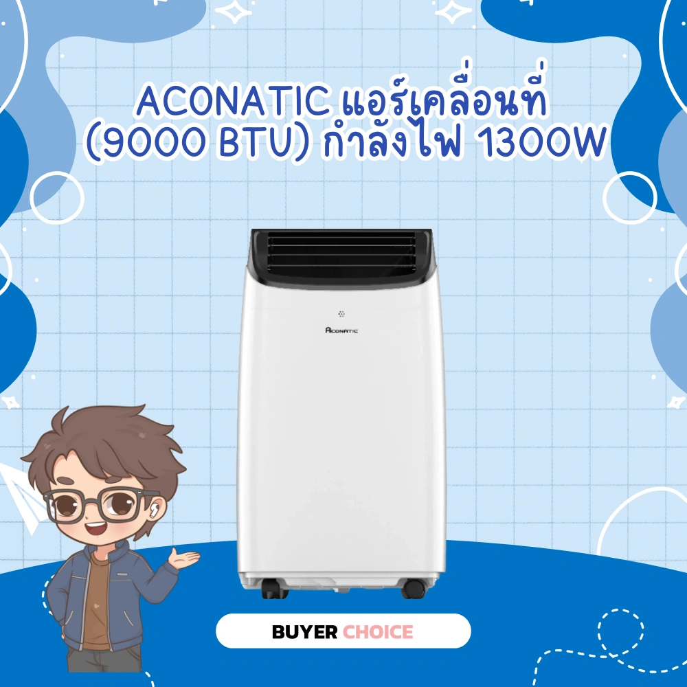 แอร์เคลื่อนที่ ยี่ห้อไหนดี | ACONATIC แอร์เคลื่อนที่ (9000 BTU) กำลังไฟ 1300W รุุ่น AN-PAC09A3