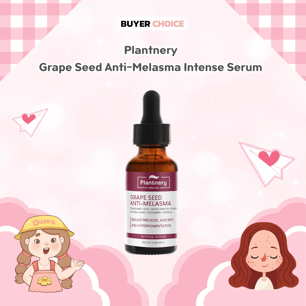 Grape Seed Anti-Melasma Intense Serum เซรั่มทาฝ้า ยี่ห้อไหนดี ช่วยบำรุงผิวอย่างล้ำลึก จัดการปัญหาฝ้า กระ จุดด่างดำได้อย่างเร่งด่วน ซึ่งเซรั่มทาฝ้าจาก Plantnery ตัวนี้ทำออกมาได้ตอบโจทย์สาวหน้าเป็นฝ้าสุด ๆ เพราะโดดเด่นด้วยสารสกัดจากธรรมชาติอย่าง Sclareolide สกัดจากรากต้น Clary Sage ทำหน้าที่เป็น Whitening คอยเคลียร์ผิวหมองคล้ำ รอยฝ้า กระ จุดด่างดำที่โดยทำร้ายจากแสง UV ให้กลับมาเนียนใสมากยิ่งขึ้น