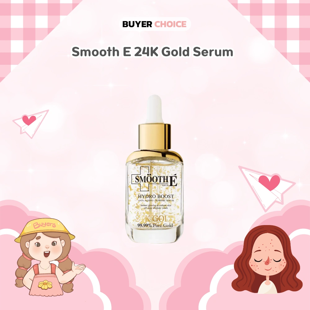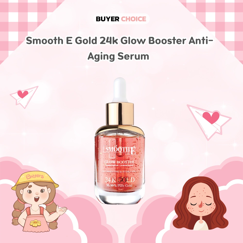 Smooth E เป็นแบรนด์สกินแคร์จากประเทศไทยที่ได้รับความเชื่อถือมายาวนานในด้านผลิตภัณฑ์ที่เน้นความอ่อนโยนและประสิทธิภาพ โดย Smooth E Gold 24k Glow Booster Anti-Aging Serum เป็นเซรั่มบำรุงผิวที่พัฒนาขึ้นเพื่อจัดการกับปัญหาริ้วรอยแห่งวัยและความหมองคล้ำ ให้ผิวกลับมาดูอ่อนเยาว์และเปล่งประกาย