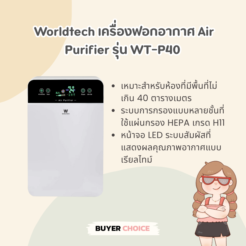 เครื่องฟอกอากาศในห้องนอน ยี่ห้อไหนดี | Worldtech เครื่องฟอกอากาศ Air Purifier รุ่น WT-P40