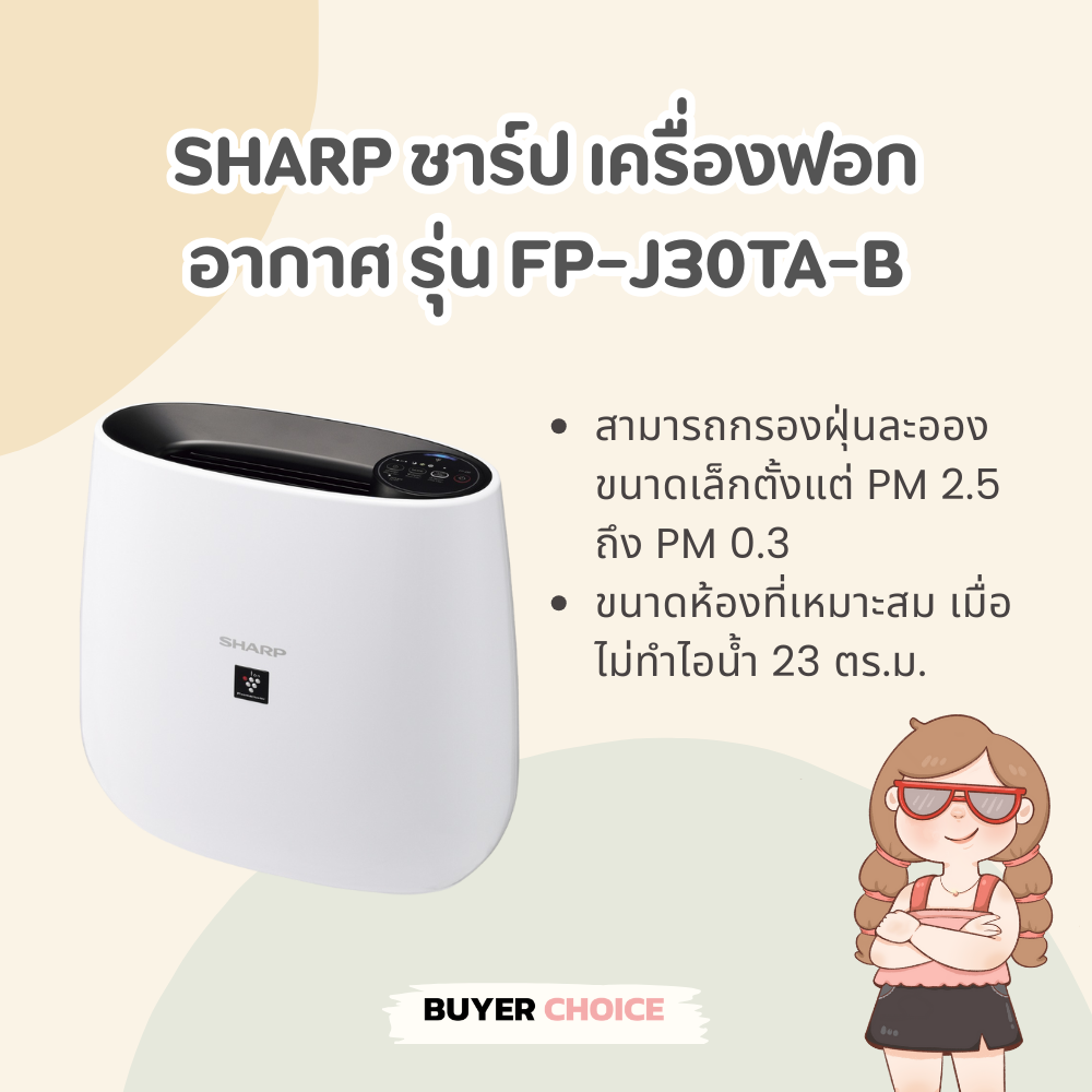 4. เครื่องฟอกอากาศ ยี่ห้อไหนดี | SHARP ชาร์ป เครื่องฟอกอากาศ รุ่น FP-J30TA-B