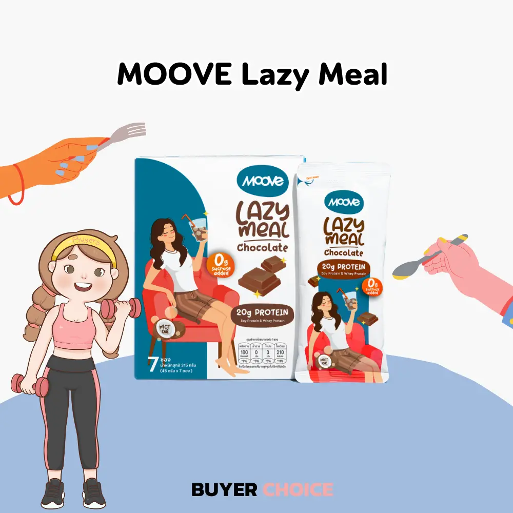 MOOVE Lazy Meal โปรตีนเชคเข้มข้น อิ่มนาน รสชาติอร่อย ทานง่าย เหมาะกับไลฟ์สไตล์เร่งรีบ สะดวกในการพกพาไปรับประทานได้ทุกที่ทุกเวลา ที่ได้รับความนิยมมากในกลุ่มคนที่ต้องการควบคุมน้ำหนักและดูแลสุขภาพ โดยเฉพาะสำหรับคนที่ต้องการลดการทานจุบจิบ และเสริมโปรตีนทดแทนมื้อเร่งรีบ ซึ่งใน 1 ซอง ให้โปรตีนสูงถึง 20 กรัมเลยล่ะ