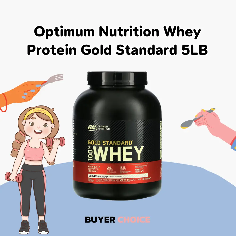 Optimum Nutrition Whey Protein Gold Standard 5LB อันดับหนึ่งของ เวย์โปรตีนเพิ่มกล้ามเนื้อ ที่ได้รับรางวัลการันตีมามากกว่า 10 ปีเลยทีเดียว ซึ่งผลิตภัณฑ์นี้ นอกจากเป็นเวย์โปรตีนสำหรับลดน้ำหนักแล้ว ยังเสริมสร้างกล้ามเนื้อได้ดี กลุ่มนักกีฬาเล่นกล้ามนิยมทานกัน เพราะส่วนผสมหลักสกัดโปรตีนมาจากธรรมชาติแบบเข้มข้นมาก ๆ มีโปรตีนสูงถึง 24 กรัม ไม่มีน้ำตาล ไม่มีสารที่ให้ความหวาน ซึมเข้าสู่ร่างกายได้ไว ทานแล้วได้ประโยชน์เต็มที่แน่นอน