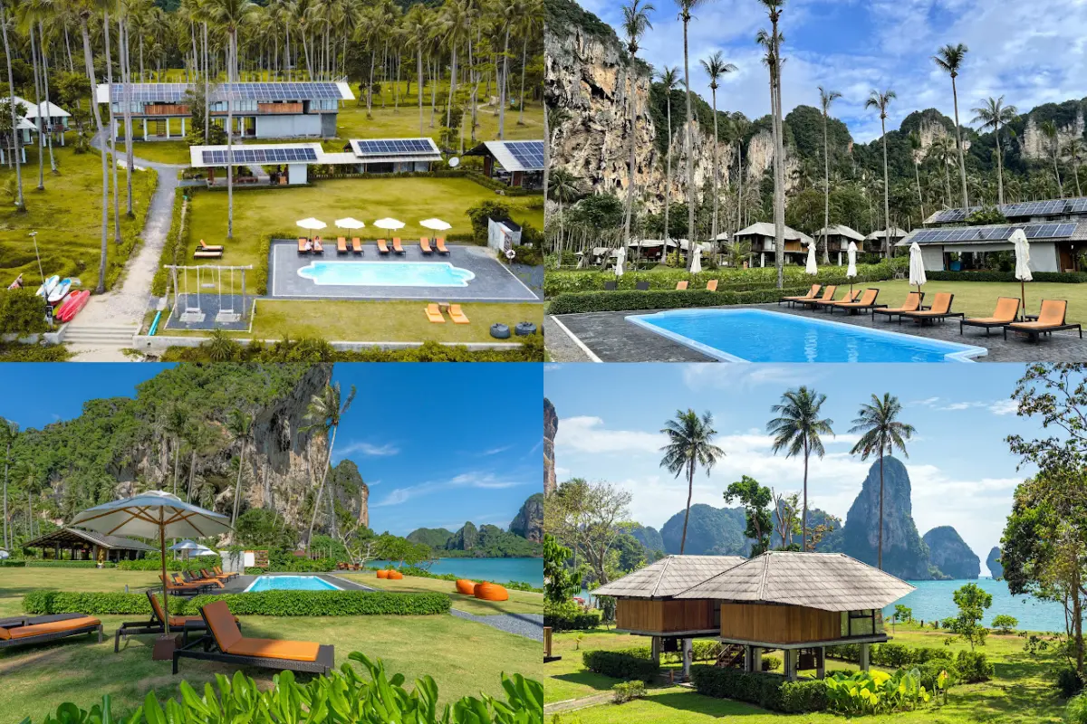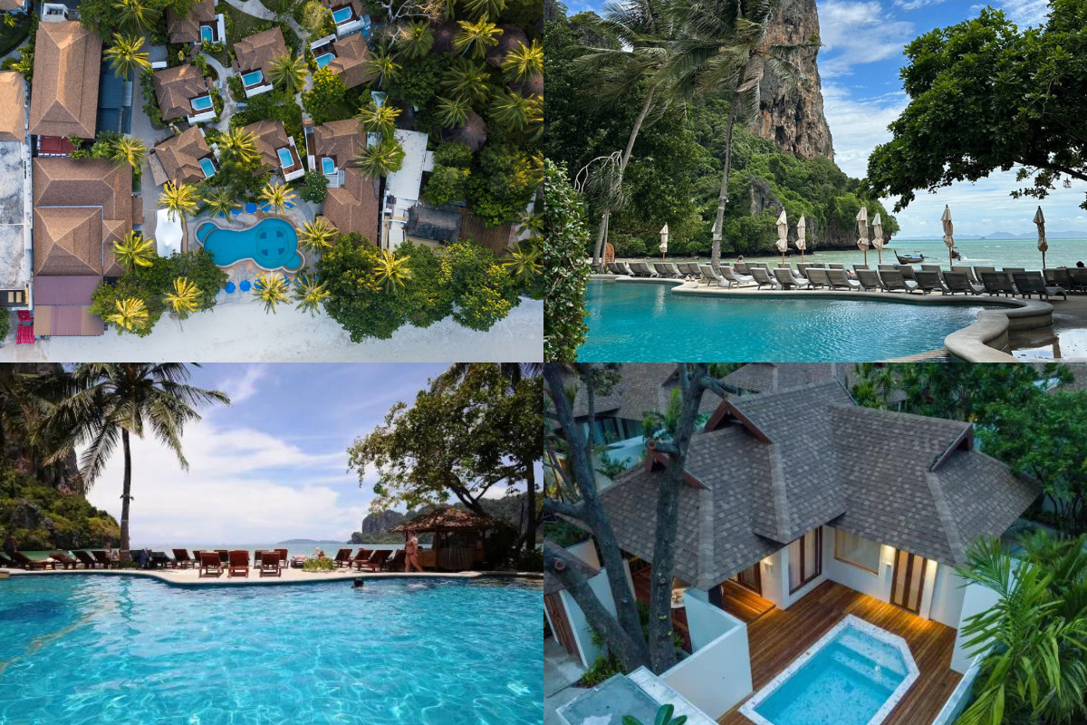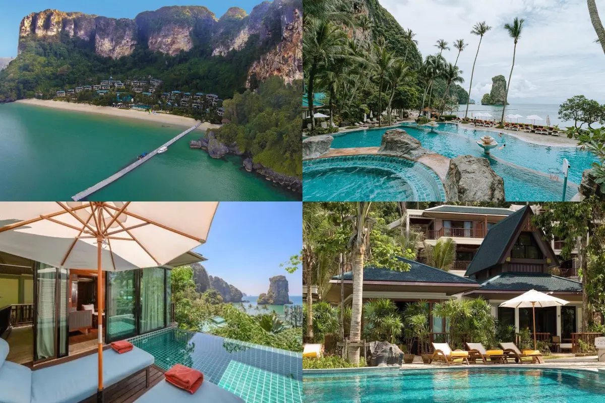 Railay Bay Resort And Spa โรงแรมกระบี่ติดทะเล ในระดับ 4 ดาว ที่มาในสไตล์บ้านพักพูลวิลล่า ซึ่งจุดเด่นของที่นี่จะมีสระว่ายน้ำส่วนตัวให้แต่ละหลัง และยังมีสระว่ายน้ำกลางแจ้งในส่วนกลาง สามารถมองเห็นทะเลได้เลย และยังมีจุดไว้ชมพระอาทิตย์ตกดินหน้าหาด บอกเลยว่าโรแมนติกสุด ๆ อีกทั้งเรื่องบริการอื่น ๆ ก็มีให้ครบครัน ทั้งอาหาร เครื่องใช้ไฟฟ้า บอกเลยว่าทริปนี้ไม่เสียใจแน่นอนที่เลือกพักที่นี่