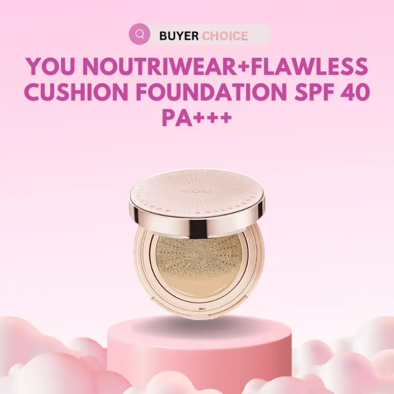 YOU NoutriWear+Flawless Cushion Foundation คุชชั่นกันแดดผสมรองพื้น ตัวดังใน tiktok เป็นเนื้อลิควิด ปกปิดได้ดีแบบ 7 in 1 ด้วยเทคโนโลยี Innovative Litestay และ Immortelle C-lock Essence ผสานเข้ากับสารบำรุง ทำให้เนื้อคุชชั่นมีความบางเบา ปกปิดได้อย่างเรียบเนียน ติดทนยาวนานถึง 16 ชั่วโมง