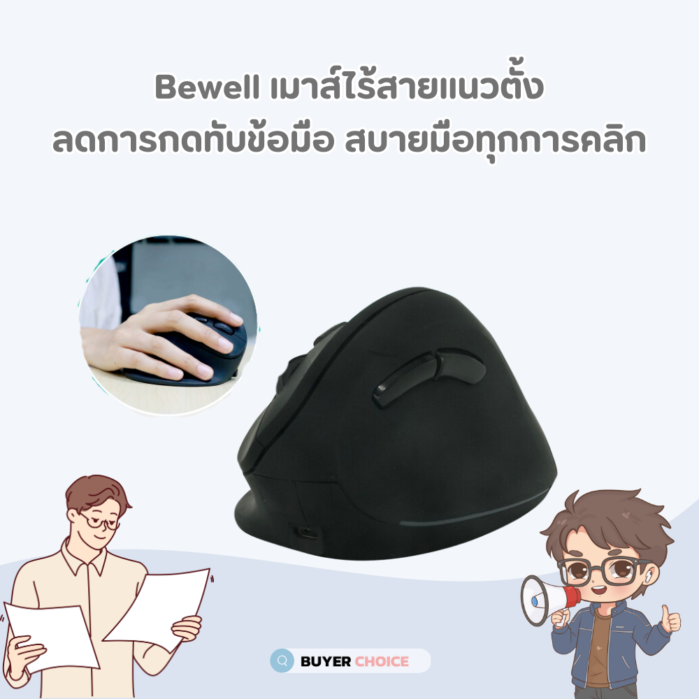 เมาส์เพื่อสุขภาพ | Bewell เมาส์ไร้สายแนวตั้ง ลดการกดทับข้อมือ สบายมือทุกการคลิก