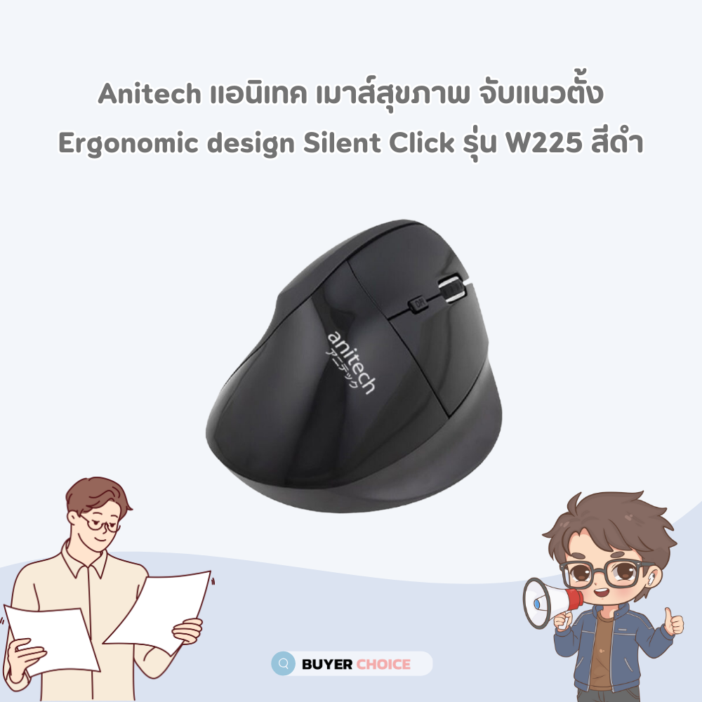 เมาส์เพื่อสุขภาพ | Anitech แอนิเทค เมาส์สุขภาพ จับแนวตั้ง Ergonomic design Silent Click รุ่น W225 สีดำ