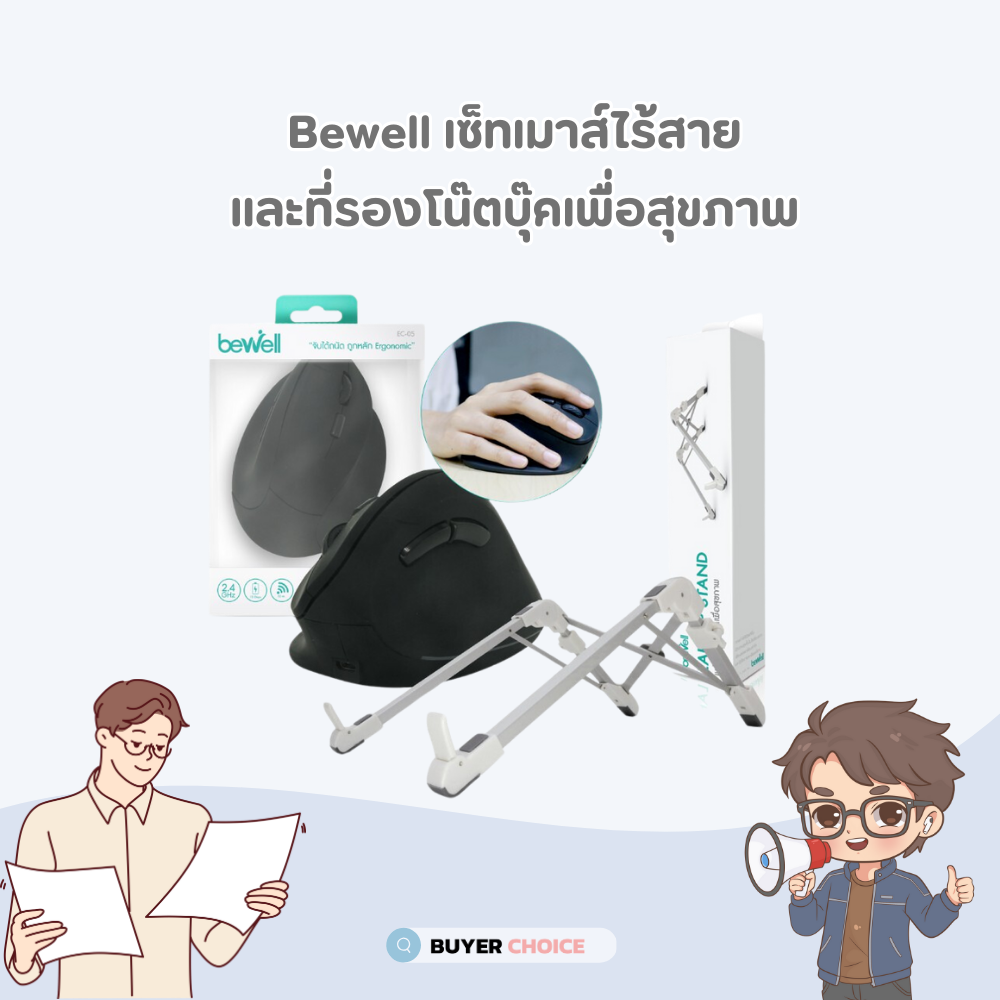 bewell เม้าส์เพื่อสุขภาพ ตัวช่วยที่น่าสนใจ เพื่อลดโอกาสเกิดโรคออฟฟิศซินโดรมยอดฮิตนี้ในทำงานของหนุ่มสาวกัน ไอเทมนี้เป็นอุปกรณ์ครบเซ็ตเมาส์เพื่อสุขภาพ โดยมีทั้งเมาส์และแท่นวางแล็ปท็อปให้พร้อม ซึ่งสามารถช่วยลดอาการไหล่ห่อ คอตก ปวดบ่า และปวดข้อมือได้เป็นอย่างดี