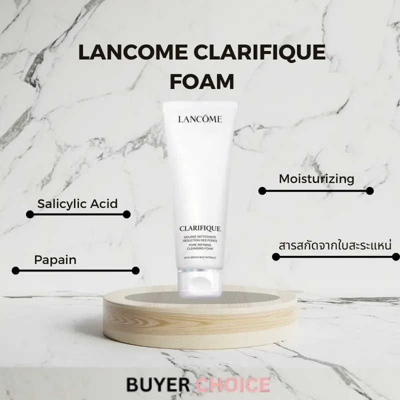 LANCOME CLARIFIQUE FOAM โฟมล้างหน้ากระชับรูขุมขนและลดสิว ตัวช่วยสาว ๆ ที่พร้อมทำความสะอาดผิวอย่างล้ำลึก ลดการอุดตัน เผยผิวสวยดูกระจ่างใส แนะนำให้ใช้อย่างต่อเนื่องจะเห็นผลลัพธ์ชัดเจน โดยเนื้อฟองโฟมจะมีความละเอียด นุ่มนวล และล้างออกได้ง่าย