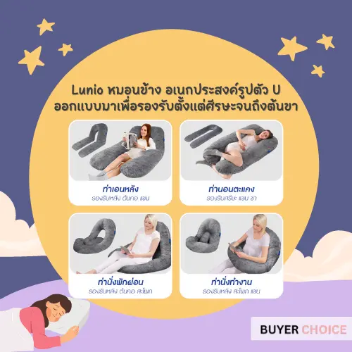หมอนสำหรับคนท้อง | Lunio หมอนข้าง อเนกประสงค์รูปตัว U ออกแบบมาเพื่อรองรับตั้งแต่ศีรษะจนถึงต้นขา
