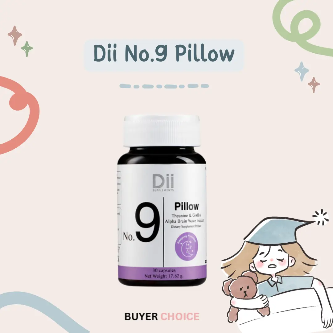 Dii No.9 Pillow วิตามินนอนหลับจากแบรนด์ดังที่มาช่วยเรื่องการนอนหลับให้มีประสิทธิภาพยิ่งขึ้น เพราะมีเพื่อน ๆ หลายคนต้องเผชิญกับปัญหาการนอน ทำให้ตื่นมาไม่สดชื่น ไม่สดใส ยิ่งพอนานเข้าไปแล้วเกิดอาการเครียดและวิตกกังวลขึ้น คุณภาพการนอนยิ่งแย่ลงขึ้นไปทุกวัน วันนี้ Buyerchoice จึงมาแนะนำวิตามินกินแล้วหลับสบายอย่างแบรนด์ดีไอไอ 9 ให้ทุกคนกัน เพื่อการพักผ่อนที่ดียิ่งขึ้น