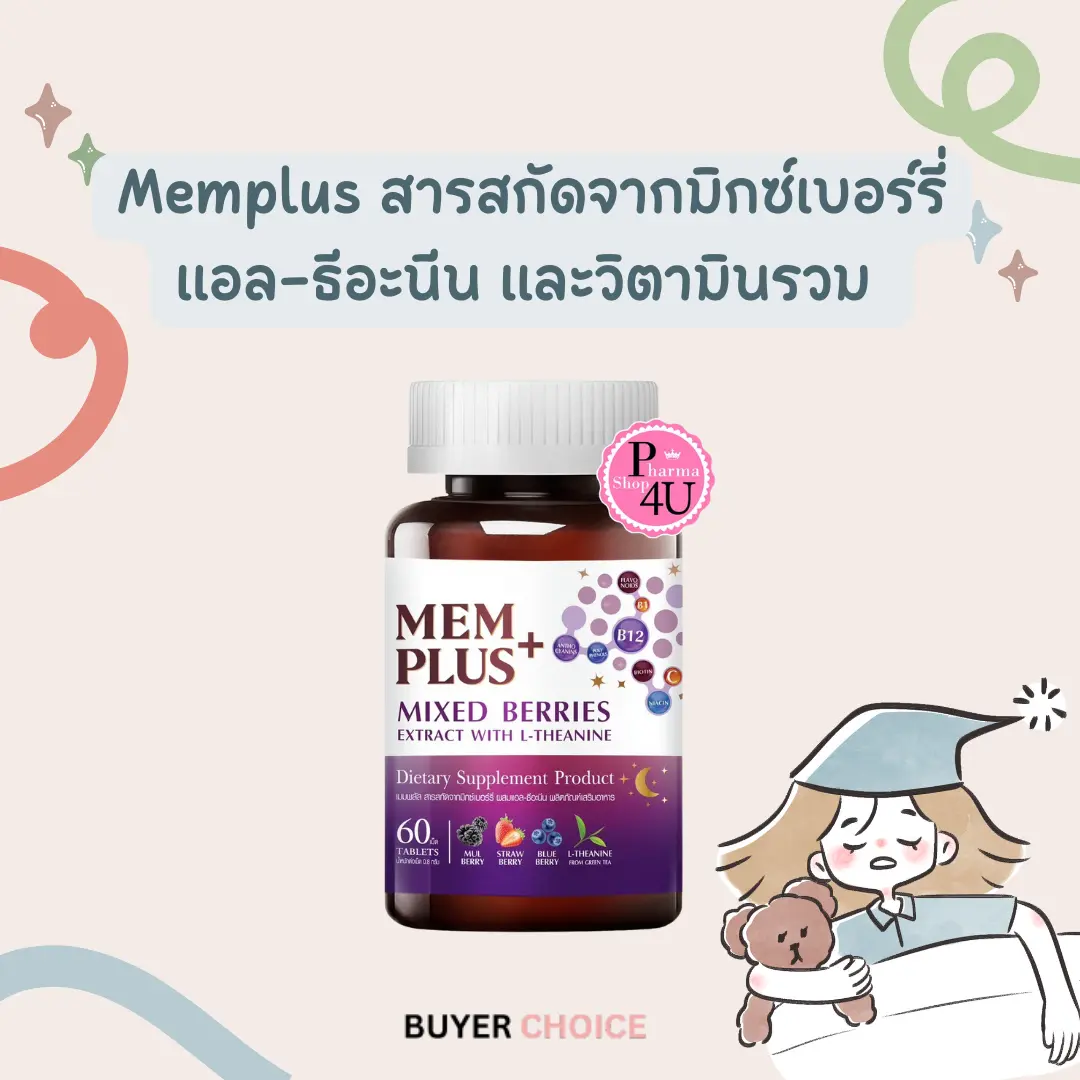 Memplus สารสกัดจากมิกซ์เบอร์รี่ แอล-ธีอะนีน และวิตามินรวม 9 ชนิด