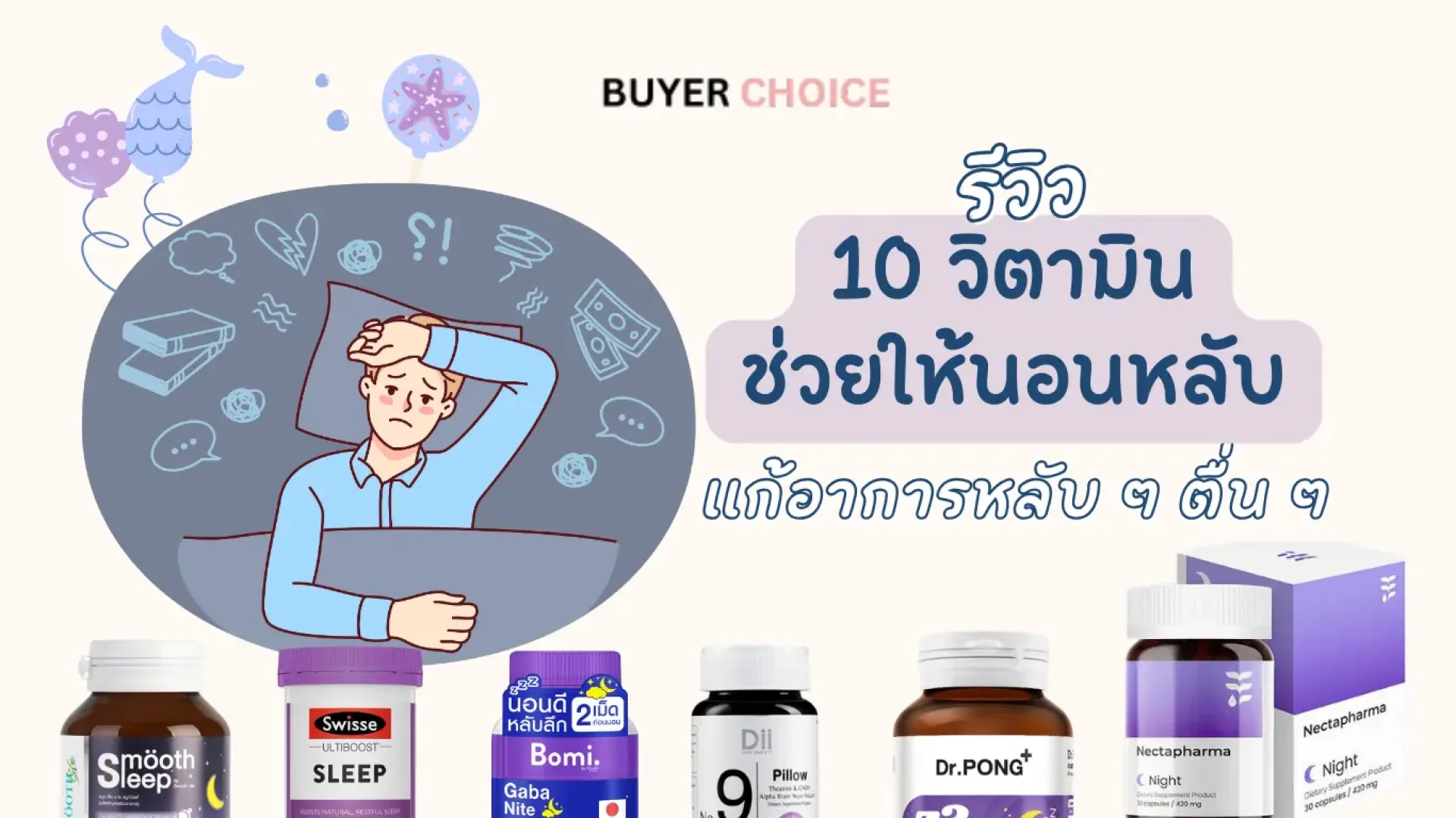 บทความนี้ Buyerchoice ได้รวบรวม 10 วิตามินยอดนิยม ที่ช่วยให้นอนหลับดีขึ้น มาแนะนำกัน มาดูกันว่าวิตามินตัวไหน จะช่วยให้คุณนอนหลับเต็มอิ่มตลอดคืน! อ่านเลย