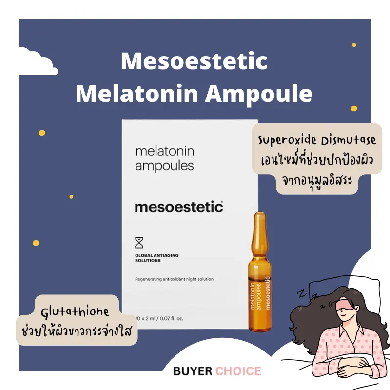 สกินแคร์ Melatonin ตัวดังของ Mesoestetic แอลพูลซ่อมแซมผิวยามค่ำคืน มาในสูตรฟื้นฟูบำรุงผิวตอนกลางคืน ที่จะมาช่วยส่งเสริมประสิทธิภาพในการป้องกันผิว โดยมีสารสำคัญหลายชนิดเป็นส่วนผสม เพื่อให้ผลลัพธ์หลังทาเป็นที่พึงพอใจ เหมาะสำหรับผูัที่มีปัญหาผิวหมองคล้ำ มีจุดด่างดำ สีผิวไม่สม่ำเสมอ ผิวขาดความยืดหยุ่น และรวมไปถึงผิวที่เผชิญกับมลภาวะมากมายในแต่ละวันอีกด้วย