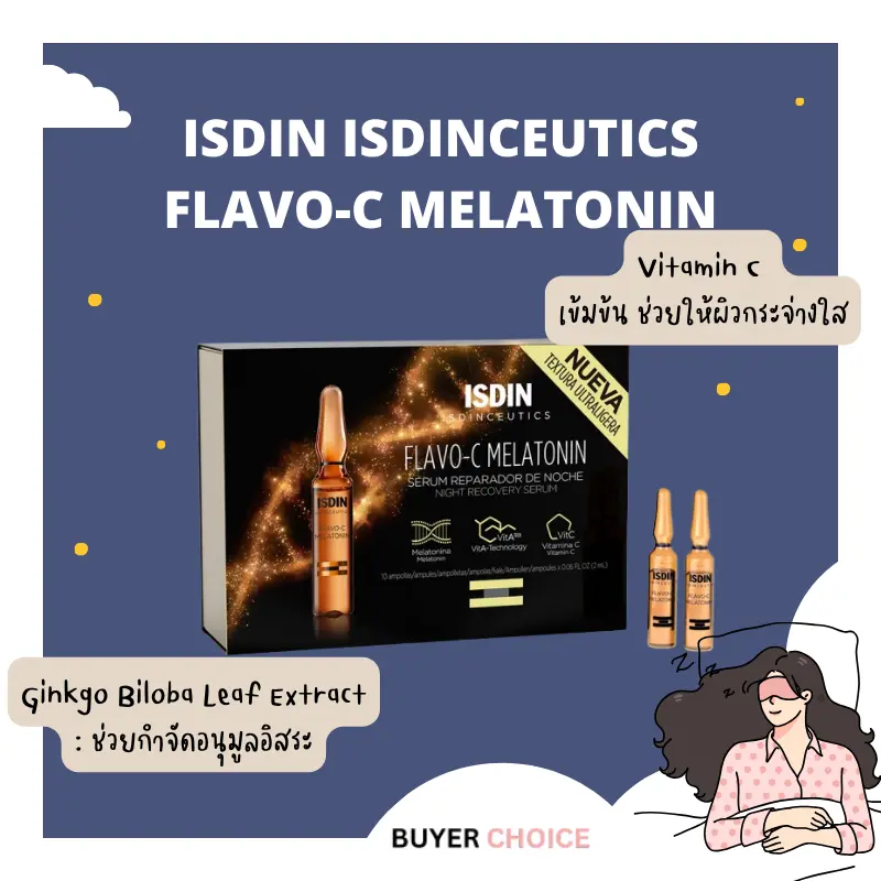 สกินแคร์ Melatonin อีสดิน อีสดินซูติกส์ ฟลาโว-ซี เมลาโทนิน ตัวช่วยดี ๆ ให้ผิวสวยใสสู้แดดด้วยเทคโนโลยีวิตามินซีติดหนึบ ทำให้เคลือบผิวและช่วยปกป้องผิวได้ยาวนานถึง 8 ชั่วโมง ถึงจะโดนแดดแค่ไหนสกินแคร์ ISDIN ก็พร้อมสู้ หากได้ทาอย่างเป็นประจำแล้วความหมองคล้ำจะไม่มาเยือนบนใบหน้าอย่างแน่นอน