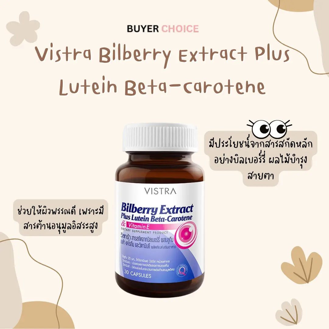 วิตามินบำรุงสายตา ยี่ห้อไหนดี | Vistra Bilberry Extract Plus Lutein Beta-Carotene