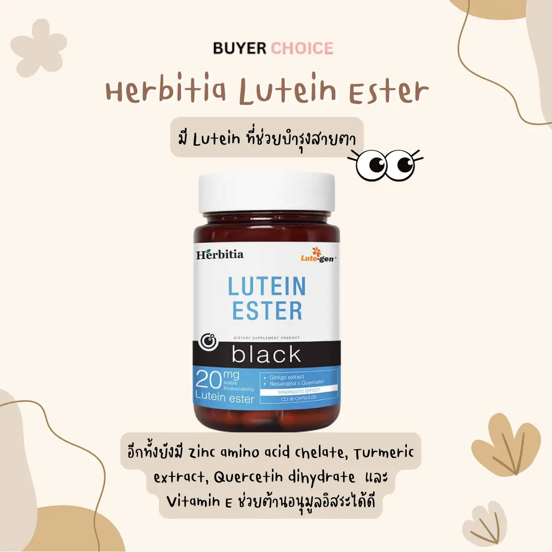 - Herbitia Lutein Ester Black เหมาะสำหรับ: ช่วยลดความดันลูกตา ป้องกันการเกิดต้อหิน