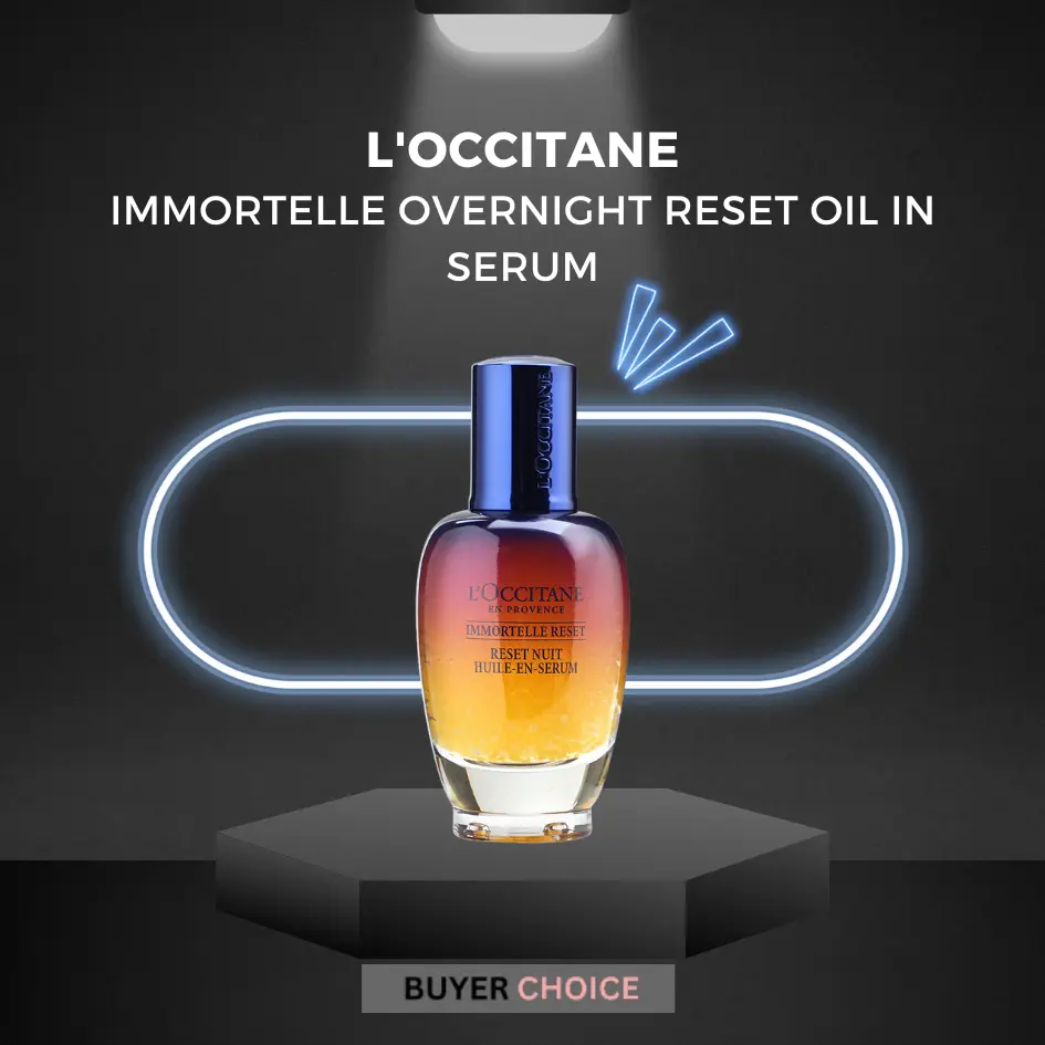 L'Occitane Immortelle Overnight Reset Oil In Serum เป็นเซรั่มเคาน์เตอร์แบรนด์ สูตรน้ำมันเนื้อบางเบา มาพร้อมสโลแกน "ตื่นเช้ามาพร้อมผิวโกลวใส ฟื้นฟูเหมือนนอนหลับเต็มอิ่ม 8 ชั่วโมง" เหมาะสำหรับผิวทุกประเภท โดยเฉพาะผิวที่ต้องการการฟื้นฟู บำรุง และลดเลือนริ้วรอย
