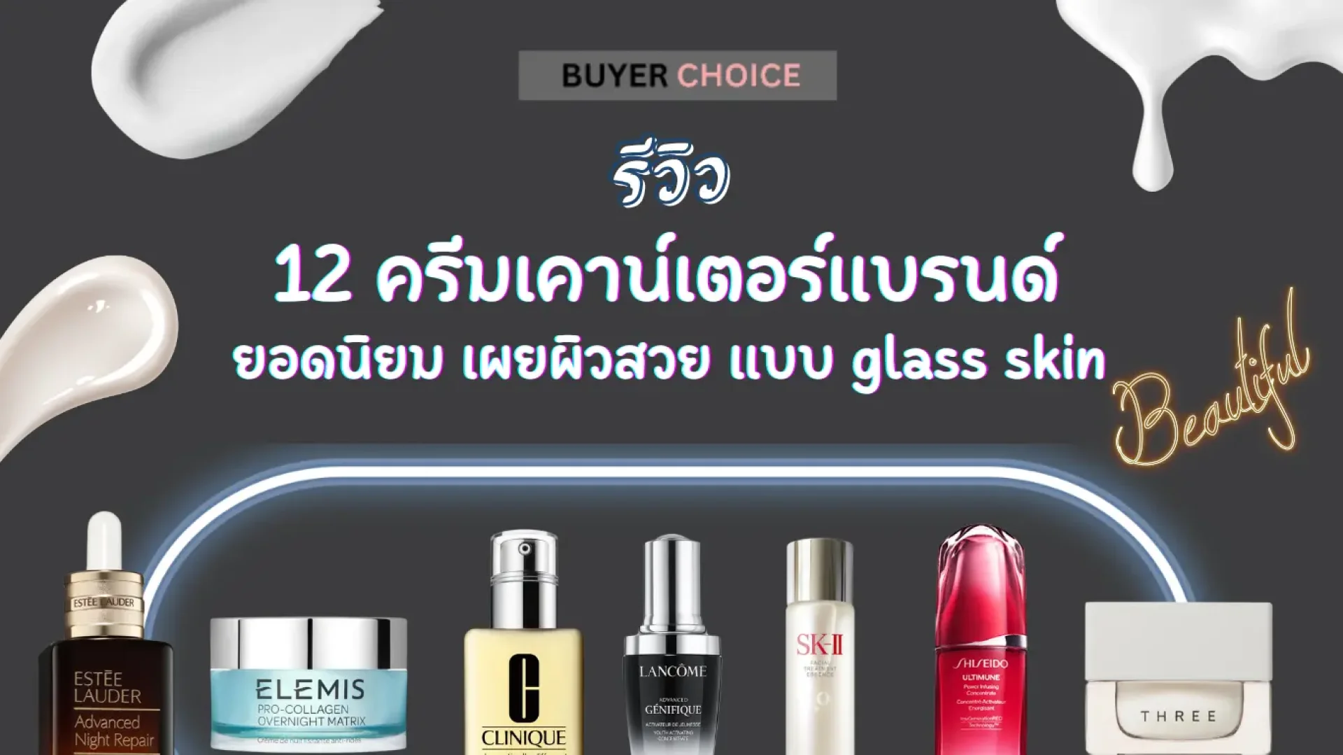12 ครีมเคาน์เตอร์แบรนด์ 2025 เผยผิวสวย แบบ glass skin