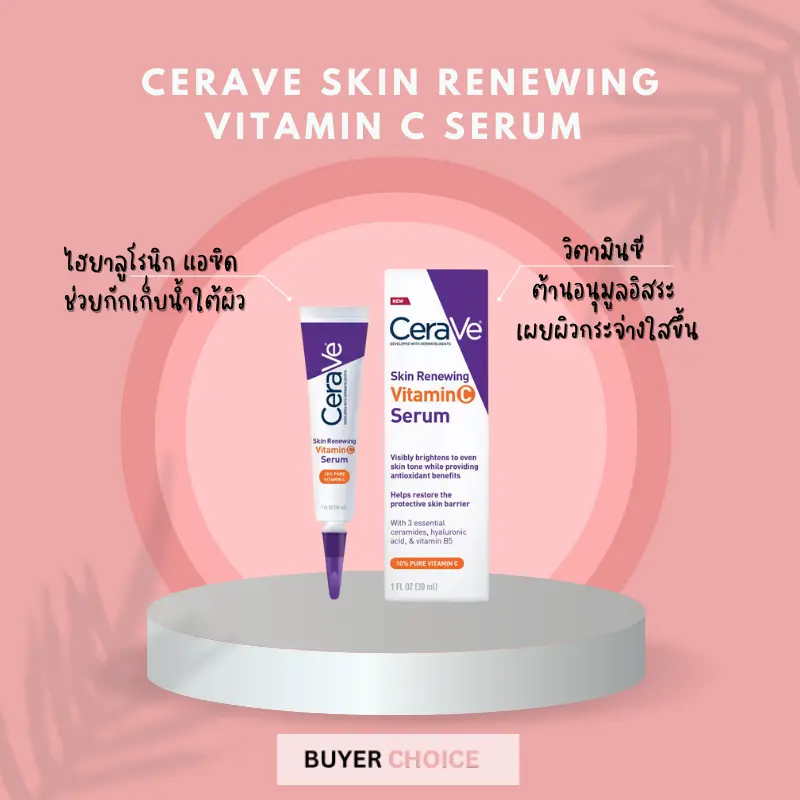 อีกหนึ่งเซรั่มลดเลือนริ้วรอยที่คิดค้นสูตรขึ้นมา เพื่อตอบโจทย์ทุกสภาพผิว นั่นก็คือครีม CERAVE Skin Renewing Vitamin C Serum เป็นผลิตภัณฑ์บำรุงผิวหน้าที่มาในรูปแบบของเซรั่ม มีสารสกัดเข้มข้น เน้นการคืนผิวที่อ่อนเยาว์ ขาวกระจ่างใส ช่วยให้ริ้วรอยต่าง ๆ ตื้นขึ้น แม้จะใช้ต่อเนื่องนานเกิน 8 สัปดาห์ ก็ไม่ก่อให้เกิดการแพ้ระคายเคืองใด ๆ