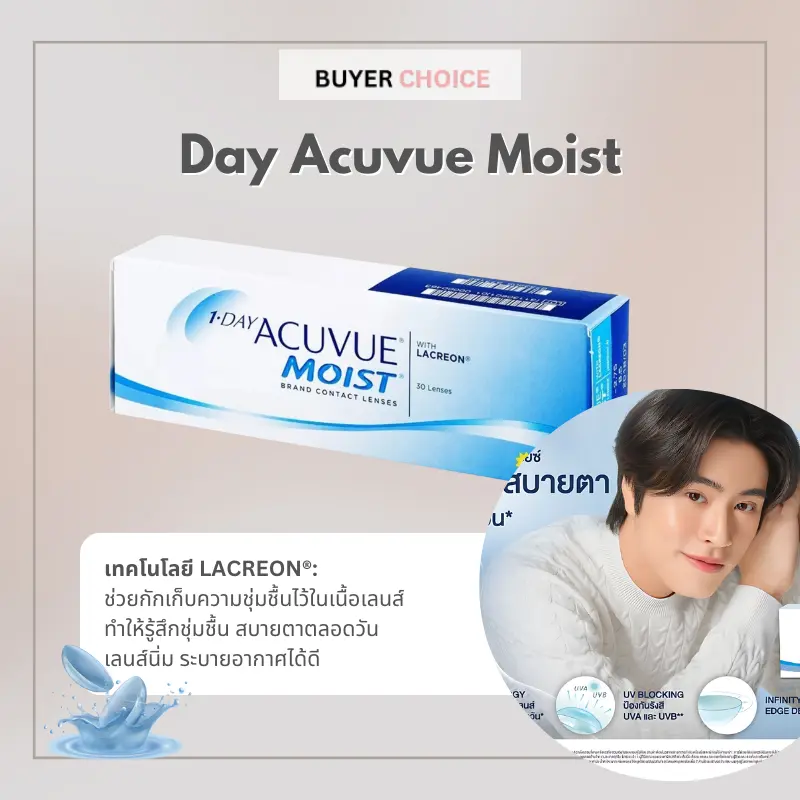คอนแทคเลนส์รายวัน ยี่ห้อไหนดี | Acuvue คอนแทคเลนส์ชนิดใส รุ่น 1 Day Acuvue Moist
