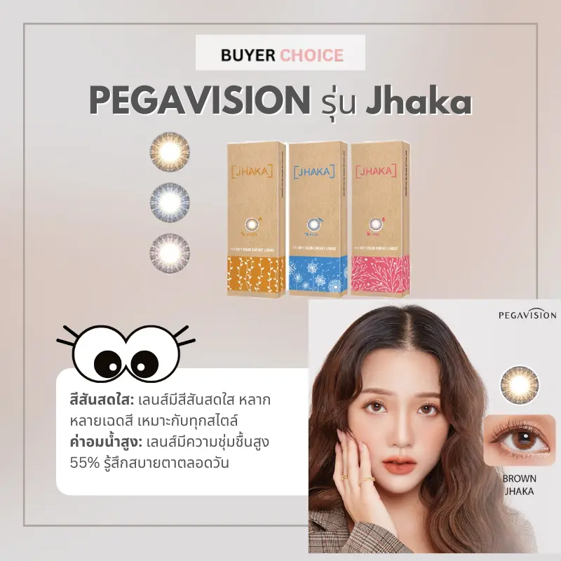 คอนแทคเลนส์สี รายวัน PEGAVISION รุ่น Jhaka มาพร้อมด้วยดีไซน์สีสันสดใส ลายเลนส์แบบกระจาย ช่วยให้ดวงตาดูมีมิติ สวยงาม