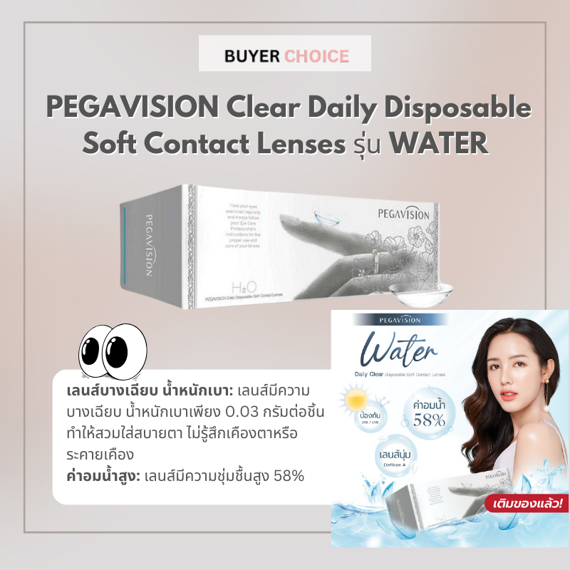 คอนแทคเลนส์รายวัน ยี่ห้อไหนดี | PEGAVISION Clear Daily Disposable Soft Contact Lenses รุ่น WATER