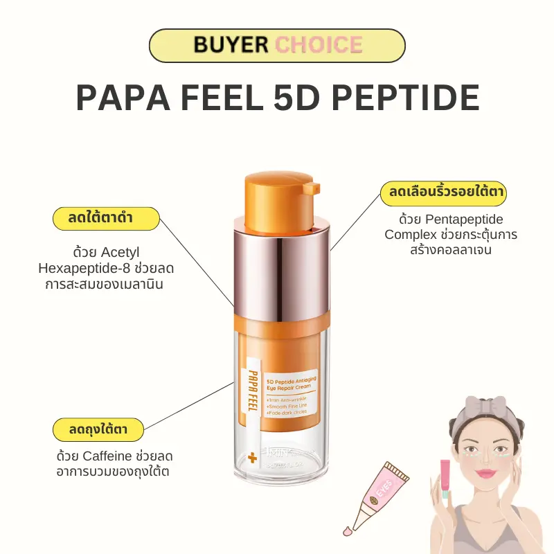 ครีมลดริ้วรอยใต้ตา ยี่ห้อไหนดี | PAPA FEEL 5D PEPTIDE