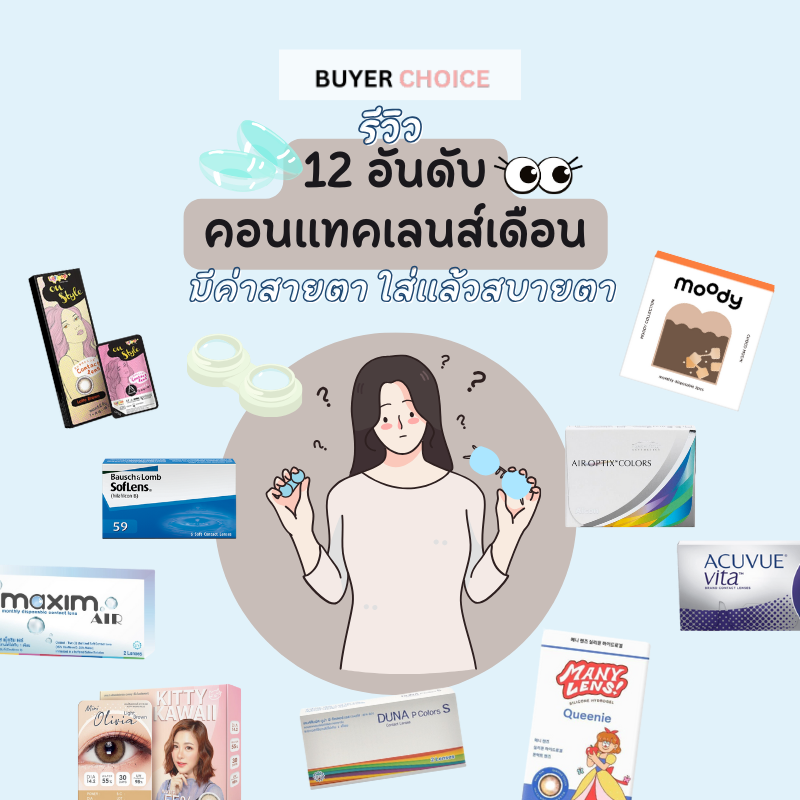 วันนี้ BuyerChoice เราจะมาป้ายยา 10 คอนแทคเลนส์รายเดือนยอดนิยม ที่มีค่าสายตาให้เลือกหลากหลาย ใส่สบายตา และช่วยให้ดวงตาของคุณดูสวยหวานยิ่งขึ้น ซึ่งแต่ละรุ่นมีจุดเด่นและเหมาะกับใคร? BuyerChoice เราจะมาบอกต่อในบทความนี้เลย!