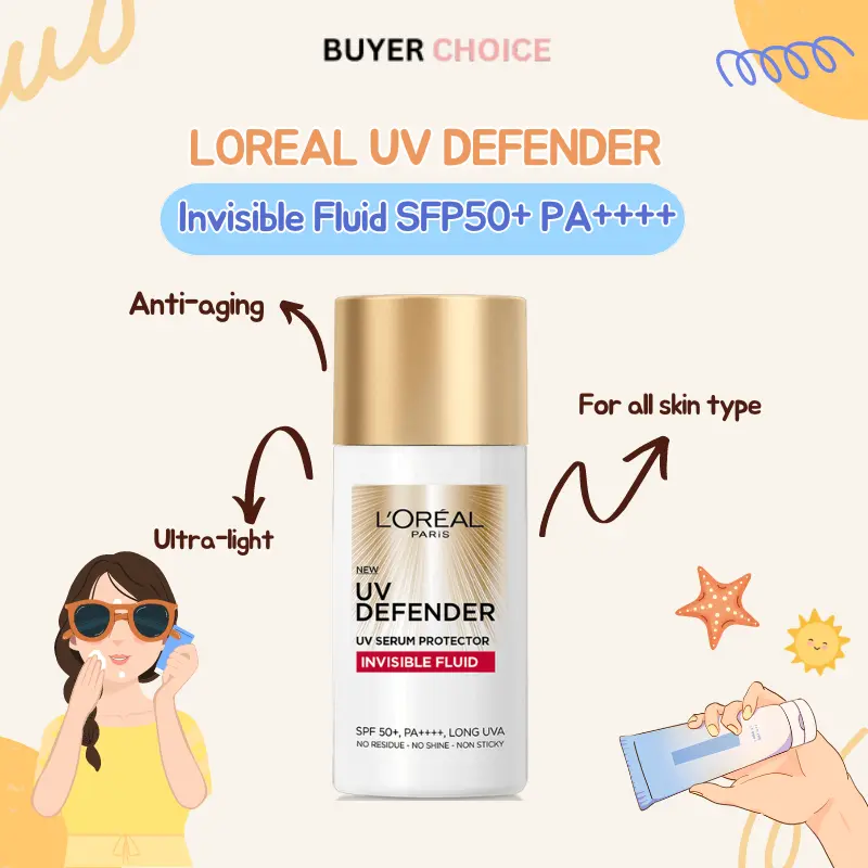 ครีมกันแดดหน้า ตัวไหนดี | ลอรีอัล ปารีส ยูวี ดีเฟนเดอร์ อินวิซิเบิ้ล ฟลูอิด เอสพีเอฟ 50+ พีเอ++++