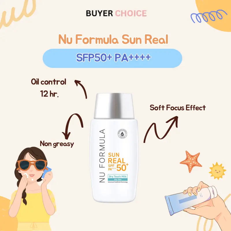 กันแดดหน้าฉ่ำ ตัวไหนดี | Nu Formula Sun Real SPF50+ PA++++ Dry Touch Milk