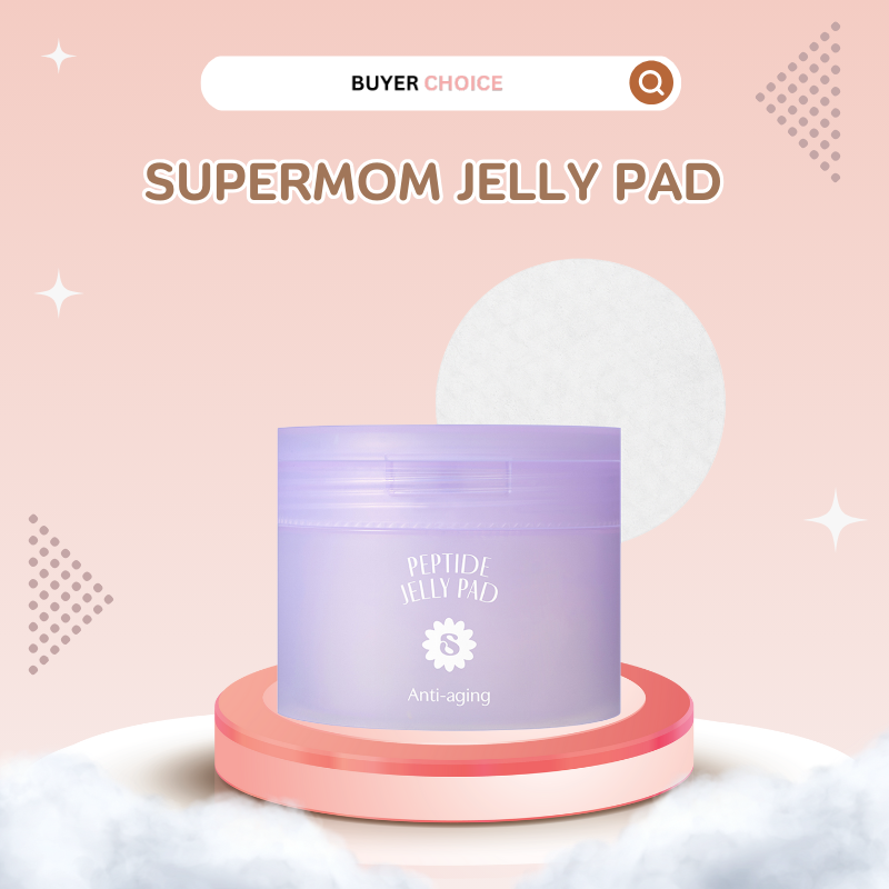 SUPERMOM คือแบรนด์เครื่องสำอางและสกินแคร์จากประเทศเกาหลีใต้ที่โดดเด่นในเรื่องคุณภาพและนวัตกรรมที่น่าสนใจ SUPERMOM JELLY PAD เป็นโทนเนอร์แพดแบบเจลลี่ที่ออกแบบมาให้ใช้งานได้หลากหลาย ไม่ใช่แค่ทำหน้าที่เป็นโทนเนอร์เพื่อปรับสภาพผิว แต่ยังสามารถใช้เป็นมาส์กบำรุงผิวแบบเร่งด่วนได้อีกด้วย เนื้อเจลลี่มีความเย็นสบาย ช่วยปลอบประโลมผิวและเติมความชุ่มชื้นได้อย่างล้ำลึก ทำให้ผิวดูอิ่มฟูและมีสุขภาพดี