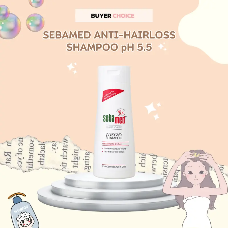 ซีบาเมด แชมพูป้องกันผมร่วง เหมาะสำหรับผู้ที่มีหนังศีรษะบอบบางแพ้ง่าย ด้วยค่า pH 5.5 ที่ใกล้เคียงกับหนังศีรษะตามธรรมชาติ ทำให้แชมพูตัวนี้ช่วยรักษาสมดุลของหนังศีรษะได้เป็นอย่างดี