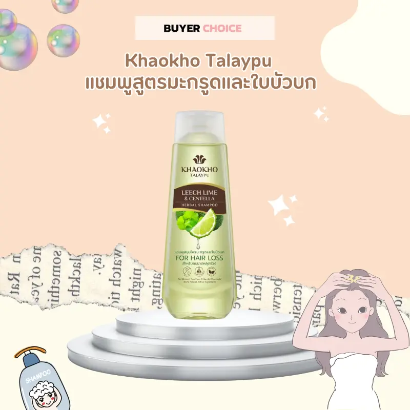 แชมพูแก้ผมร่วง ยี่ห้อไหนดี | Khaokho Talaypu แชมพูสูตรมะกรูดและใบบัวบก ช่วยลดผมร่วง