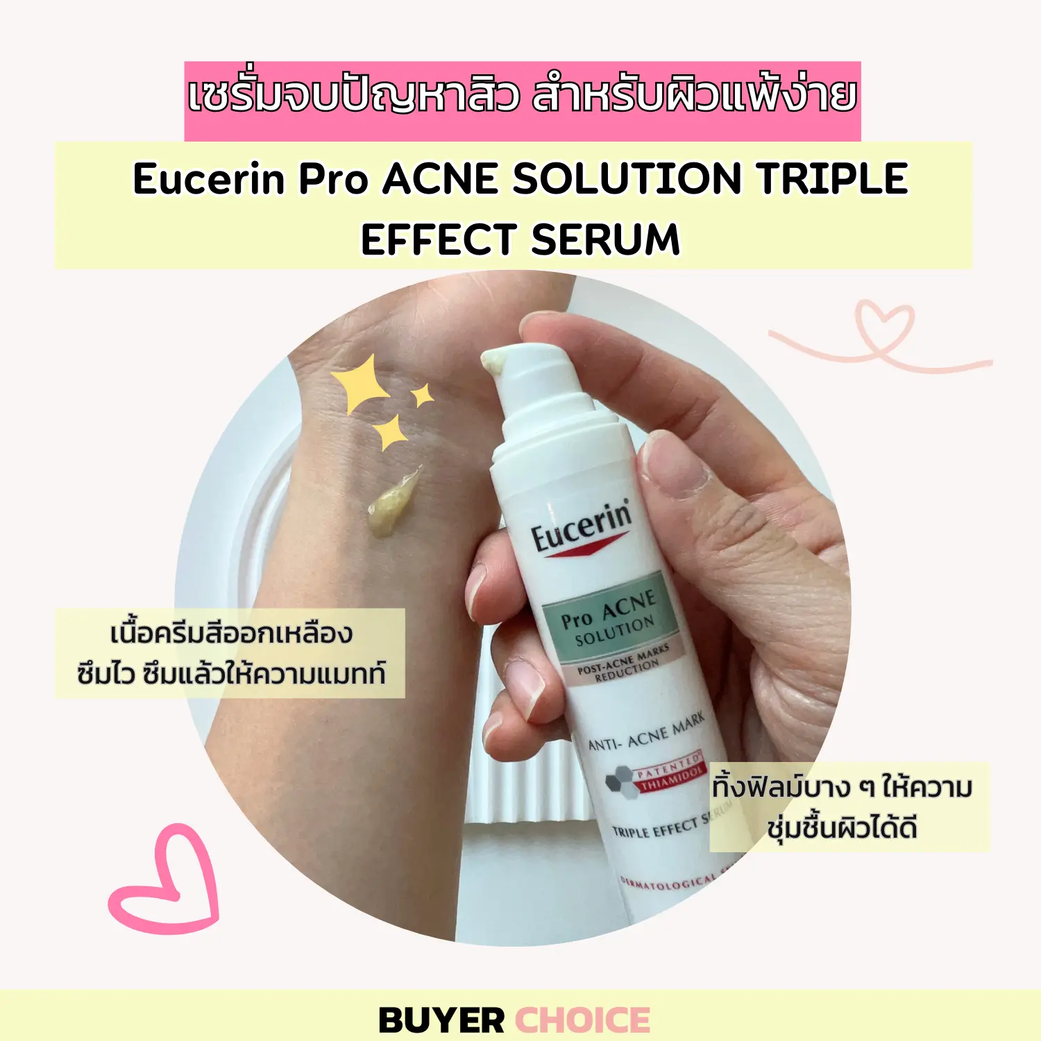 Eucerin Pro ACNE SOLUTION TRIPLE EFFECT SERUM เป็นเซรั่มสำหรับผู้ที่มีปัญหาสิวและรอยสิว ด้วยส่วนผสมที่เข้มข้นและมีประสิทธิภาพในการแก้ปัญหาผิวหลายด้าน ทำให้เซรั่มตัวนี้เป็นที่จับตามองของใครหลาย ๆ คน