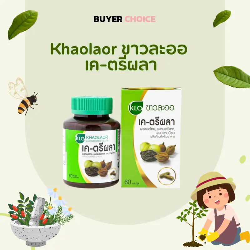 Khaolaor ขาวละออ เค-ตรีผลา เป็นผลิตภัณฑ์เสริมอาหารที่มีส่วนผสมหลักคือ ตรีผลา ซึ่งเป็นสมุนไพรไทยโบราณที่ประกอบด้วยสมุนไพร 3 ชนิด ได้แก่ มะขามป้อม สมอพิเภก และสมอไทย โดยมีสรรพคุณโดดเด่นในการบำรุงสุขภาพโดยรวม และมีส่วนช่วยในการดูแลระดับน้ำตาลในเลือด