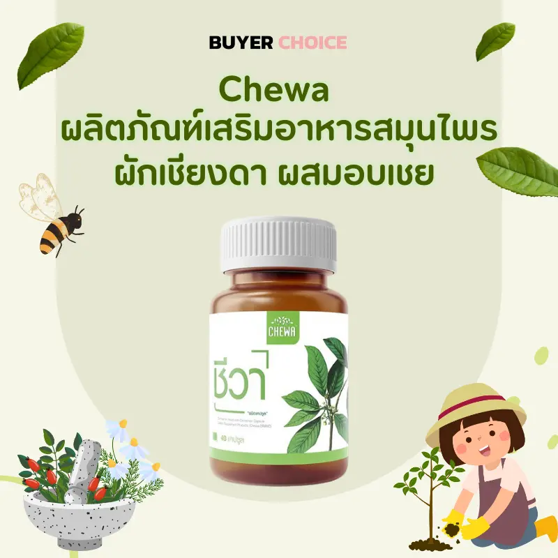 Chewa ชีวา เป็นผลิตภัณฑ์เสริมอาหารสมุนไพรที่มีส่วนผสมหลักคือ ผักเชียงดา และอบเชย ซึ่งเป็นสมุนไพรที่มีสรรพคุณทางยาหลายประการ โดยเฉพาะอย่างยิ่งในการช่วยควบคุมระดับน้ำตาลในเลือด