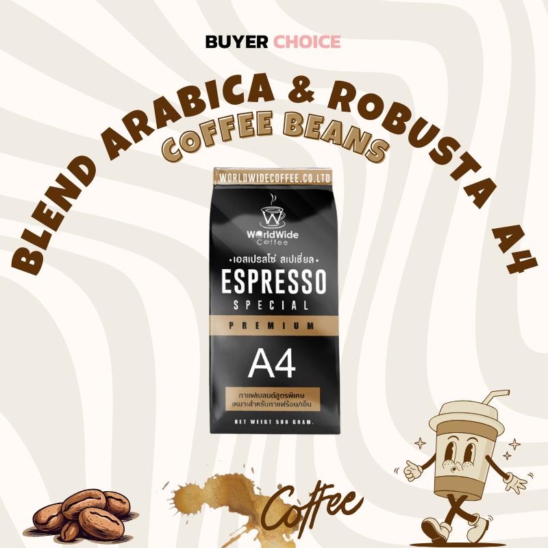 เมล็ดกาแฟ เมล็ดกาแฟคั่วสดใหม่ สูตร Blend Arabica & Robusta A4