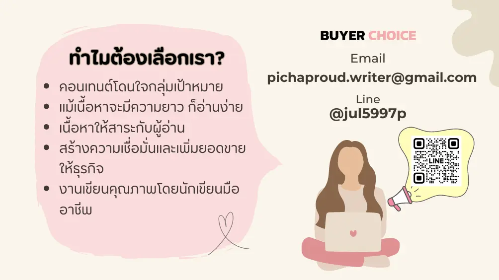 | 300-600 คำ | 550 บาท | 1-3 วัน | ลงใน Facebook/ บทความใน Blog |