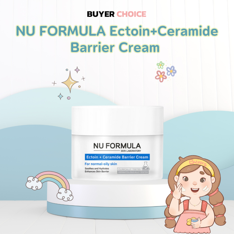 NU FORMULA Ectoin+Ceramide Barrier Cream เป็นครีมบำรุงผิวที่มีส่วนผสมหลักคือ Ectoin และเซราไมด์ ช่วยเสริมสร้างและซ่อมแซมเกราะป้องกันผิว ทำให้ผิวแข็งแรงขึ้นและลดการสูญเสียน้ำ เหมาะสำหรับผิวแห้ง ผิวแพ้ง่าย หรือผิวที่ระคายเคืองจากมลภาวะ
